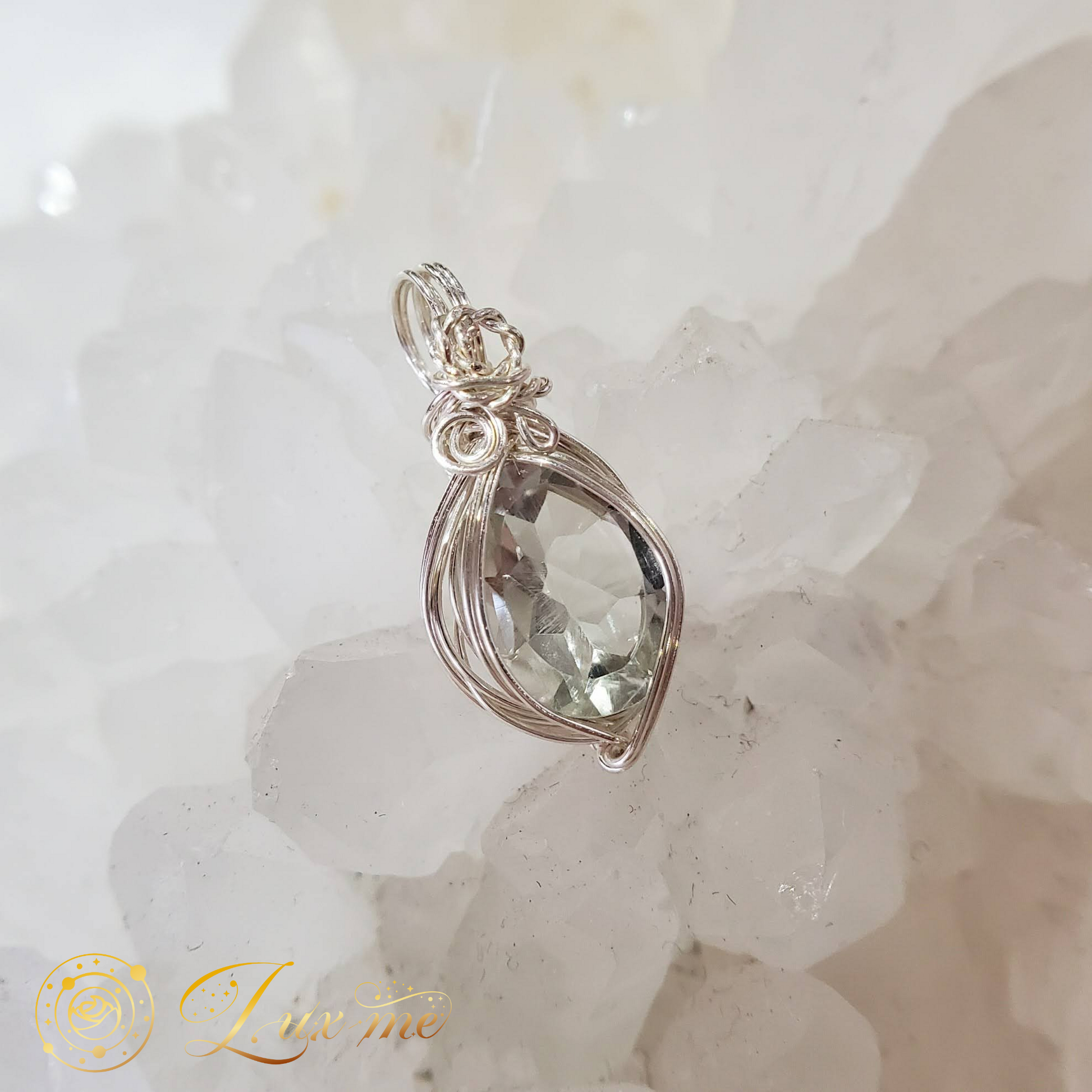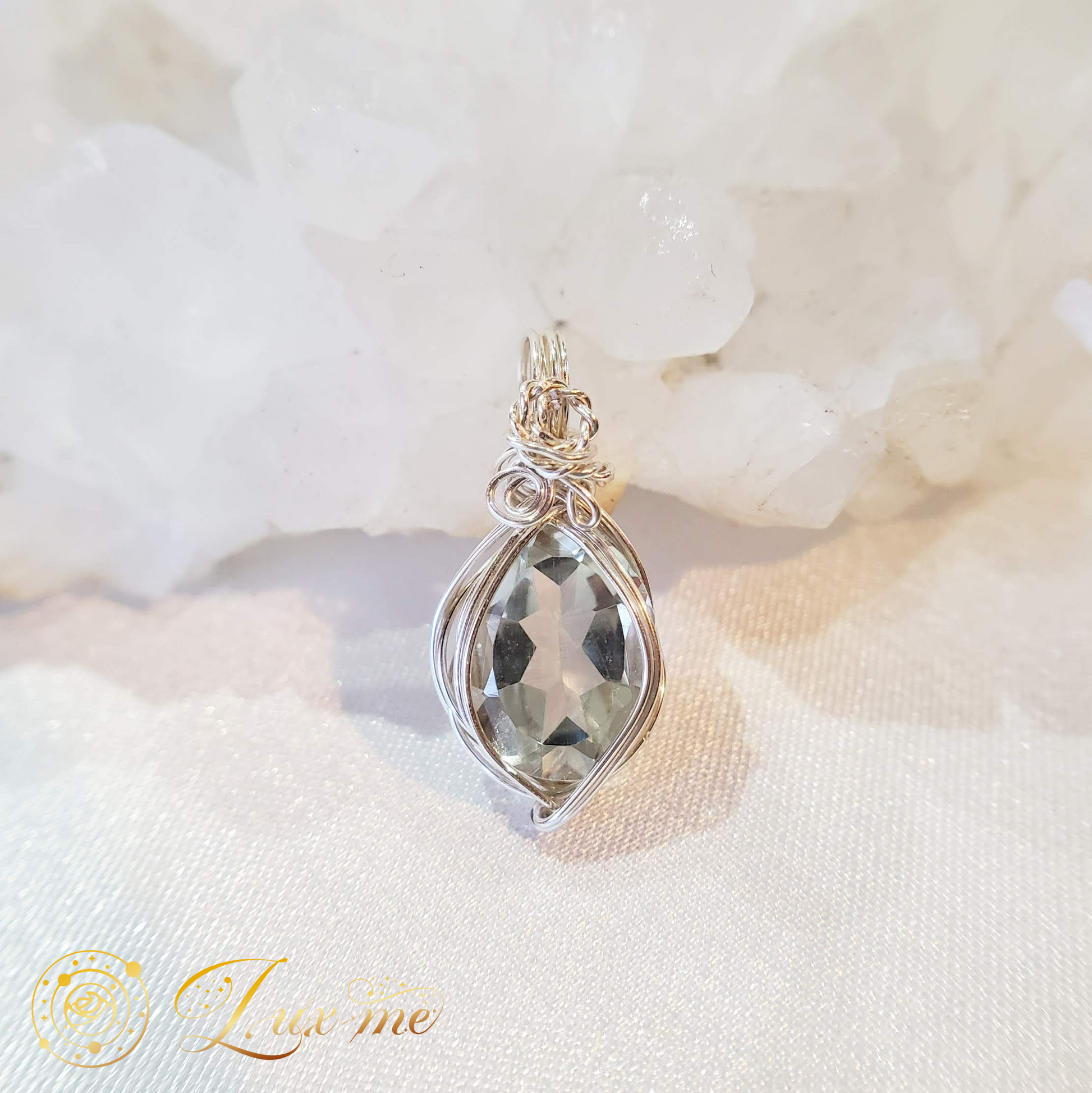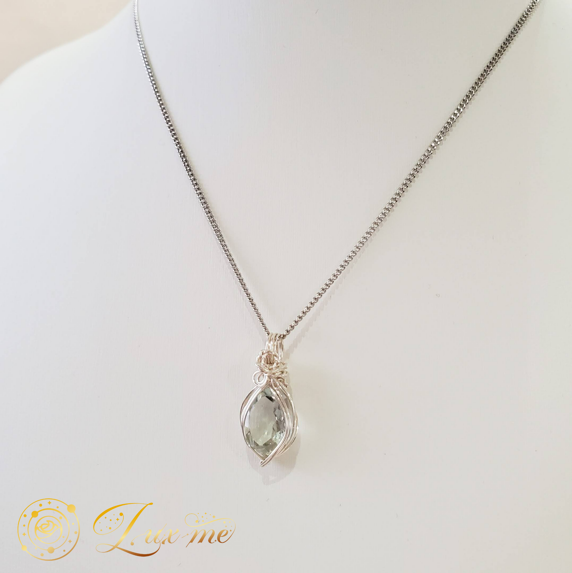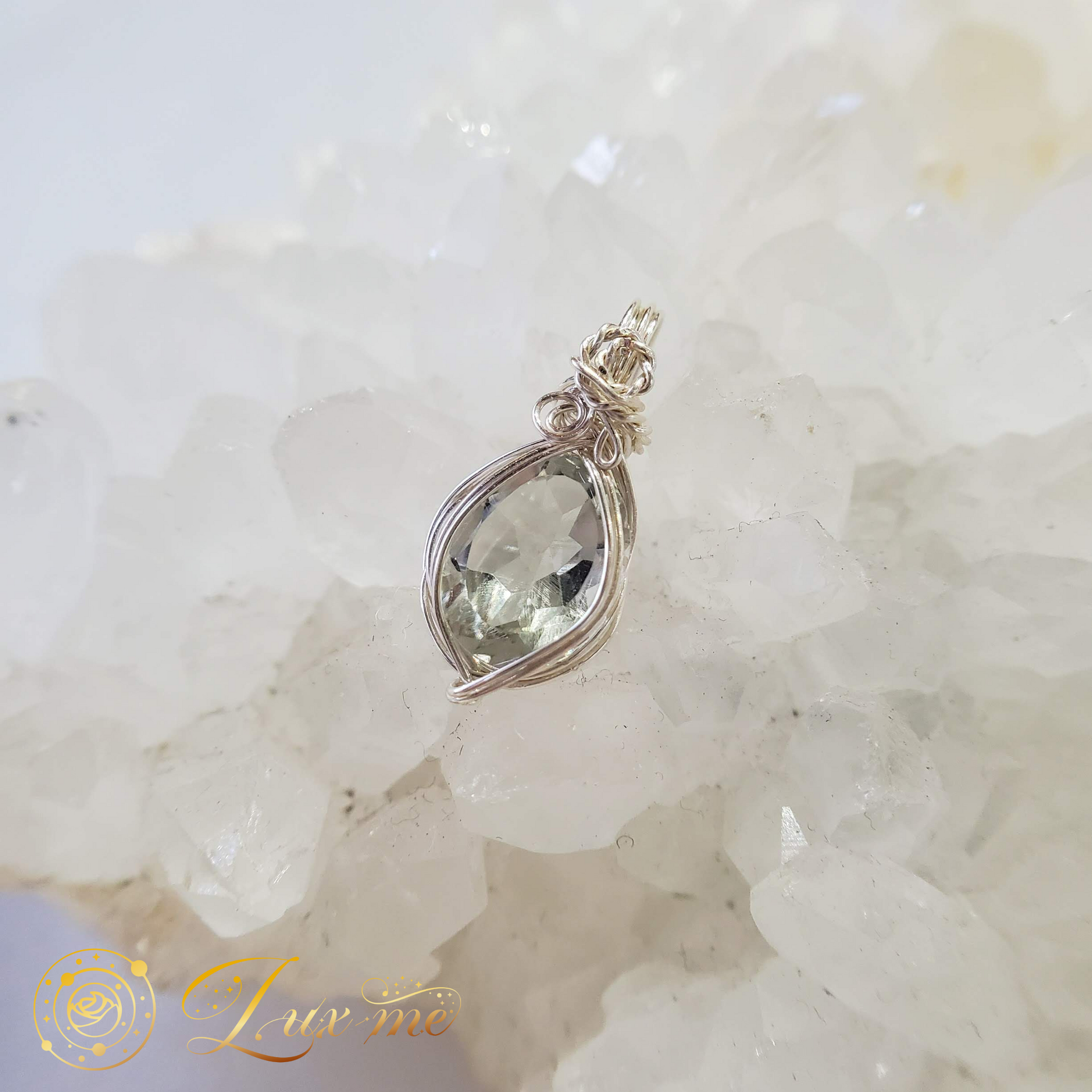 アメジストといえば一般的には紫色の石ですが、ごく一部の限られた質の良いアメジストを加熱することにより、美しいペールグリーンの石へと変容することがあります。これをグリーンアメジスト、別名プラシオライトと呼びます。