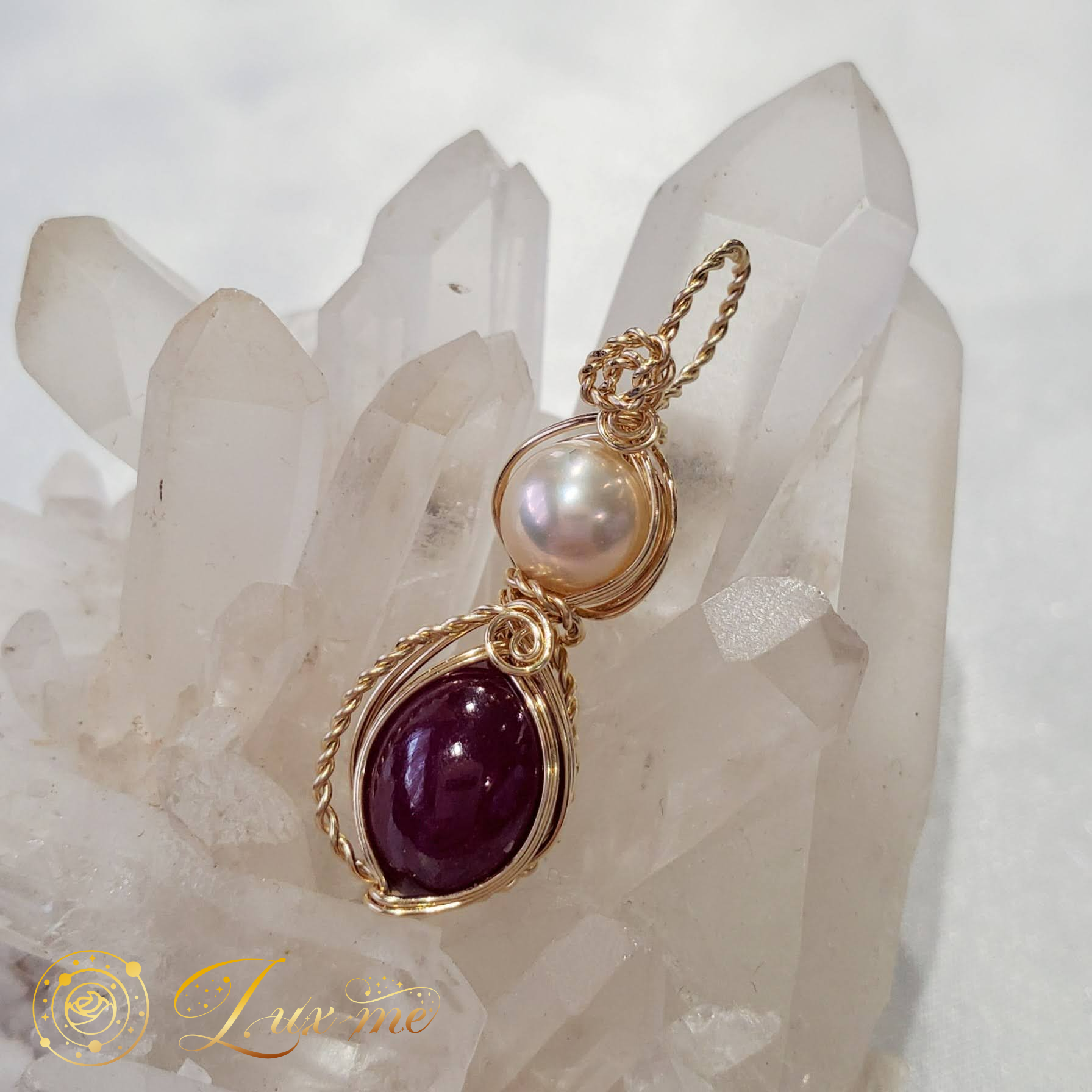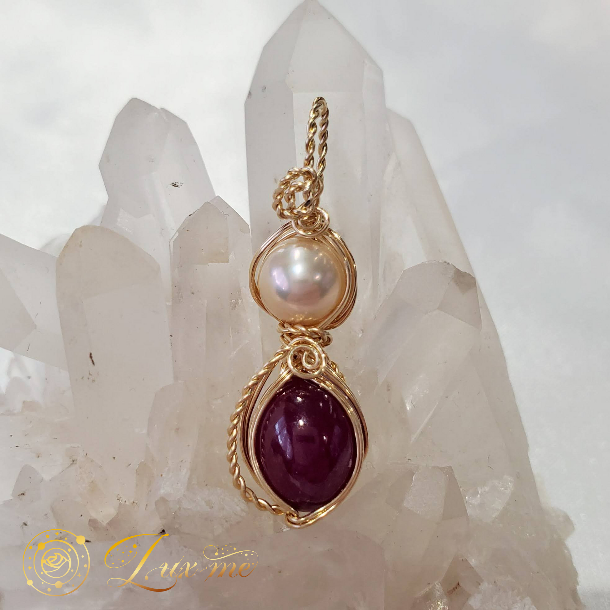 ルビーと淡水パールのペンダントトップ