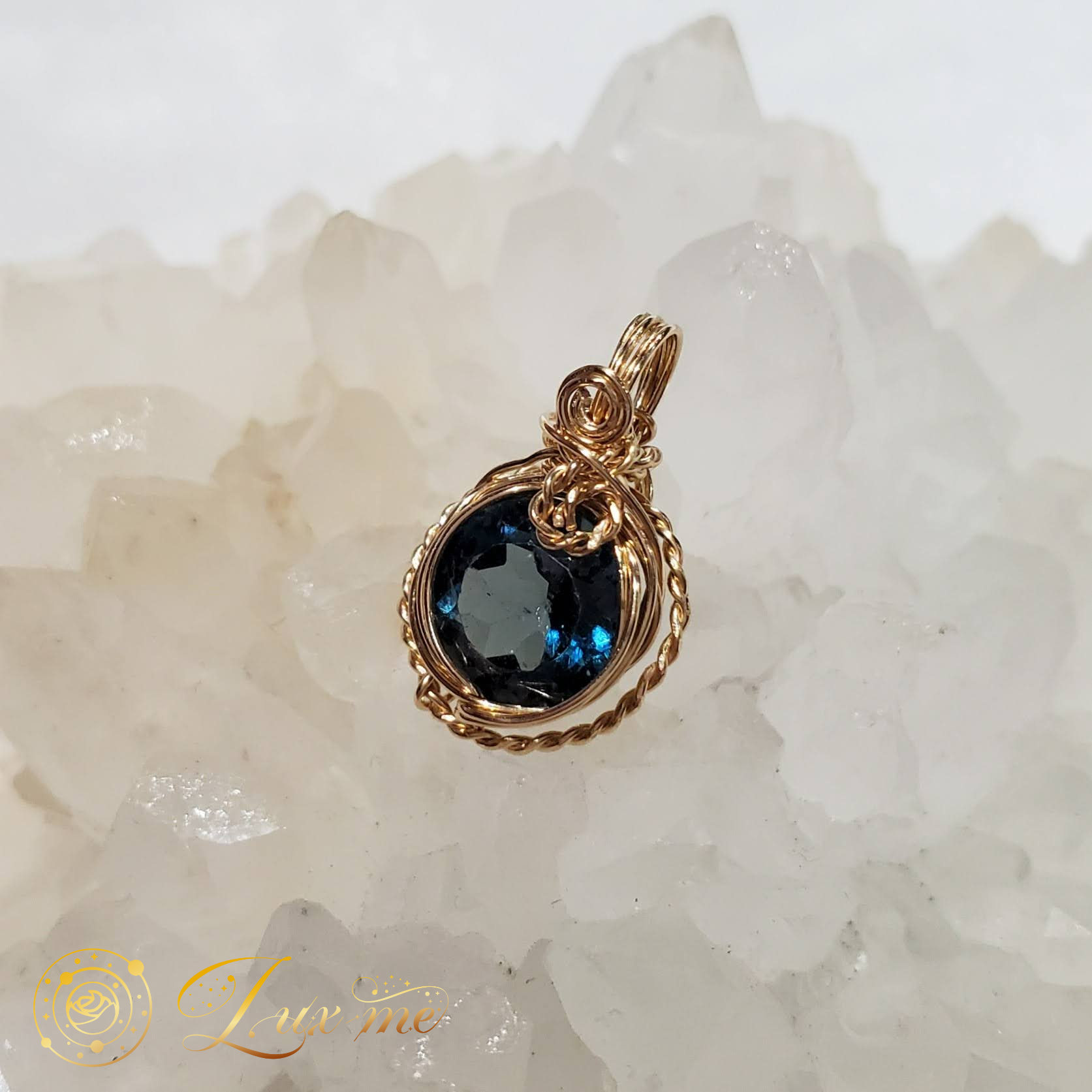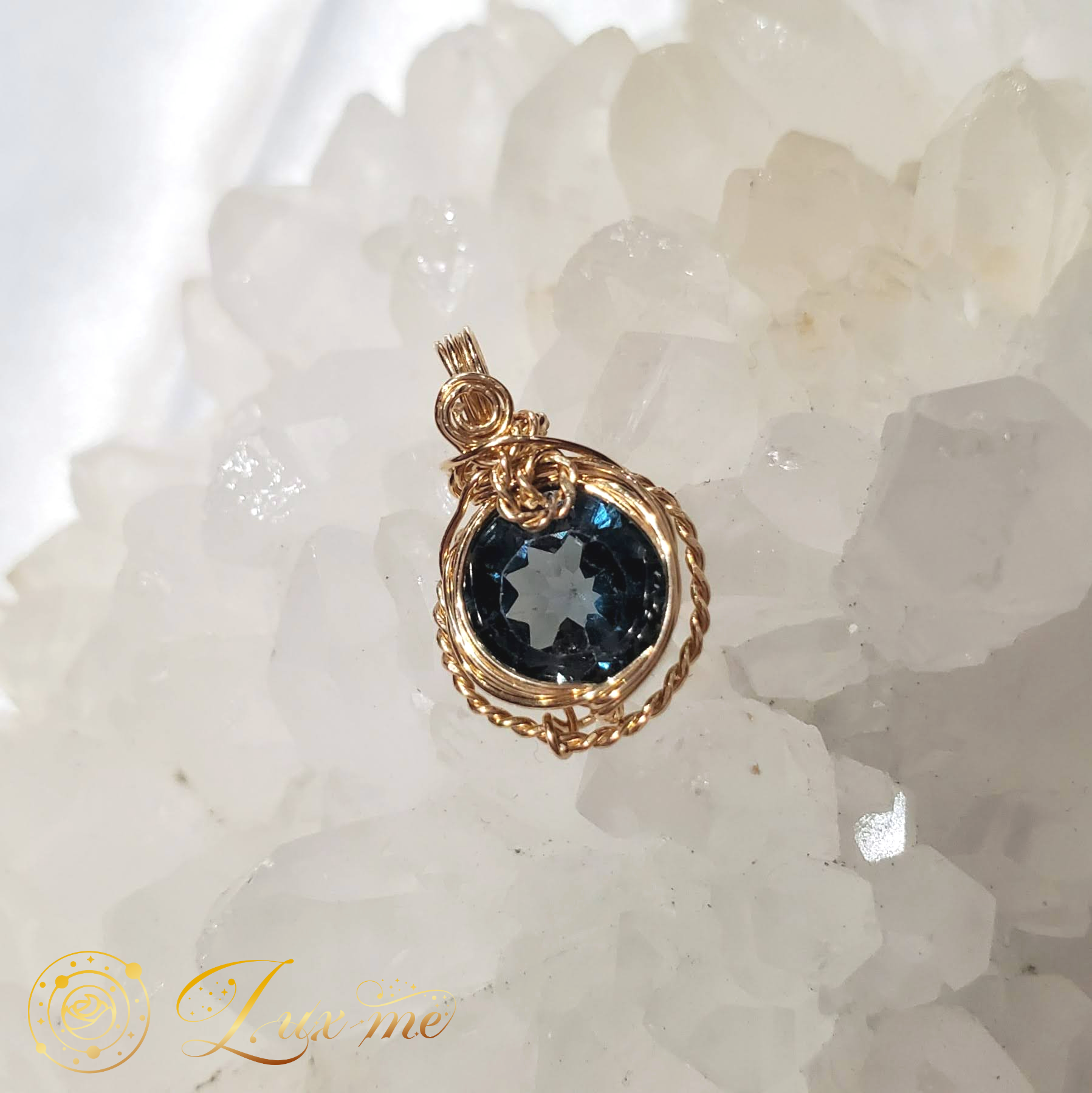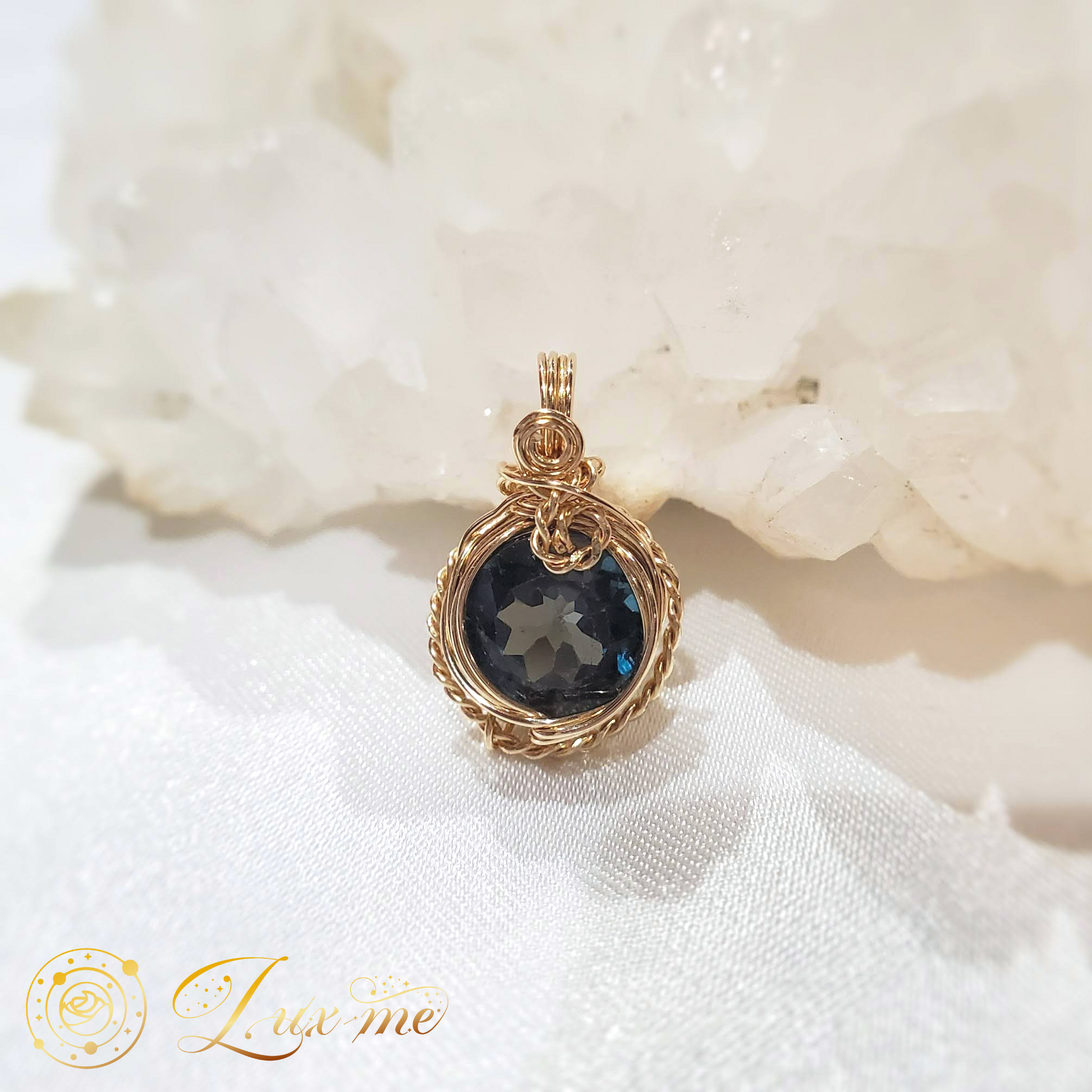ロンドンブルートパーズのワイヤーアートペンダントトップ