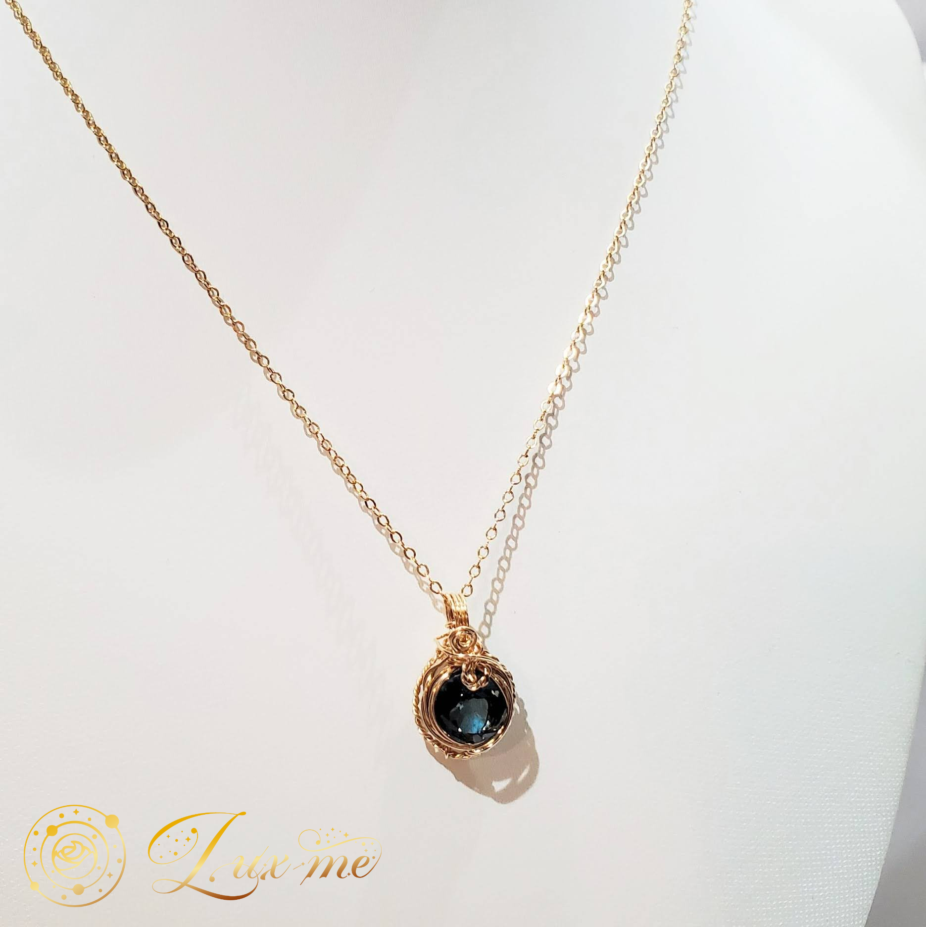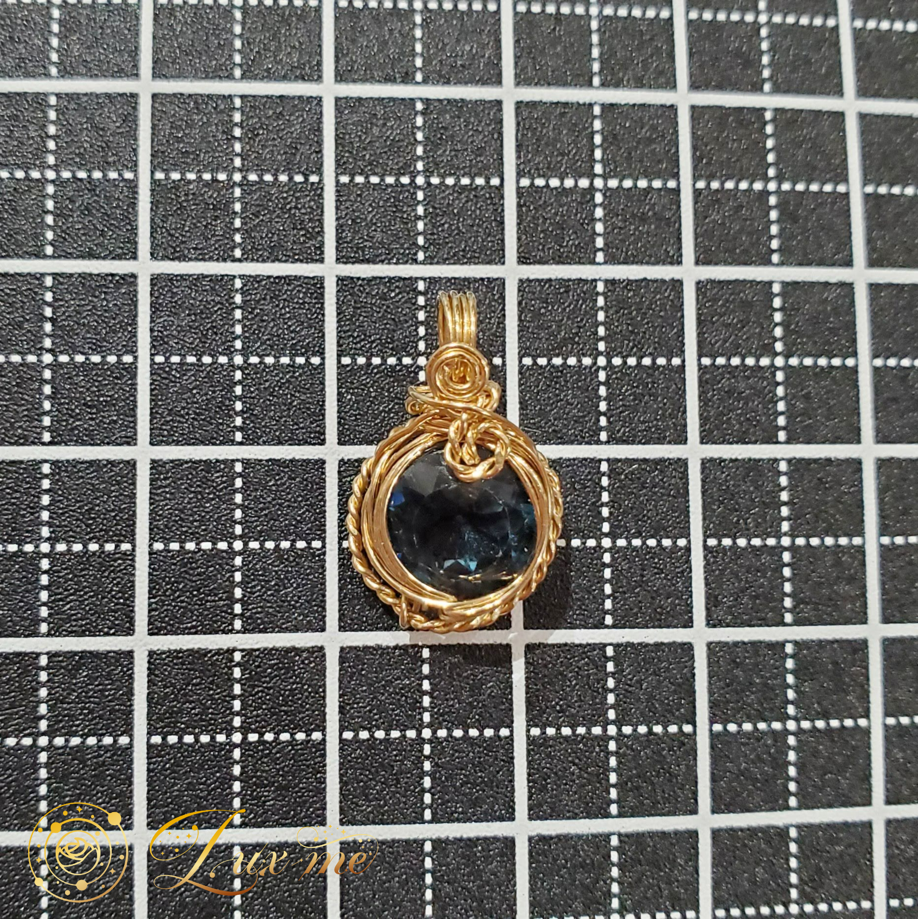 繊細なカットが施されたラウンドシェイプのカットルースを14kgfワイヤーで巻き、印象的なペンダントトップに。